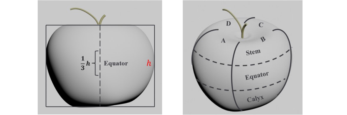 2024年,南京農業大學潘磊慶教授團隊在 Spectrochimica Acta Part A: Molecular and Biomolecular Spectroscopy 上發表了一篇題為《Comparing visible and near infrared ‘point’ spectroscopy and hyperspectral imaging techniques to visualize the variability of apple firmness》的文章。作者將可見-近紅外(Vis-NIR)“點”光譜和高光譜成像(Vis-NIR-HIS)技術應用于三種不同品種的蘋果,并建立了硬度評價模型。              【樣品 & 測試】作者使用了三個品種的蘋果: “紅富士”(RF)、 “奶油富士”(CF)、“花牛蘋果”(HA),將每個蘋果按照圖1 方式總共標記了 12個區域來進行測量。作者使用復享光譜儀 PG2000-Pro 和 NIR25S 制作成一個光譜儀平臺收集“點”光譜數據,在反射模式下交替采集蘋果樣品的可見光-近紅外(360~1050nm)和近紅外光譜(900~2500nm)。如圖2 所示,光纖將光傳遞至樣品,并收集樣品反射出的光,再傳輸至光譜儀。