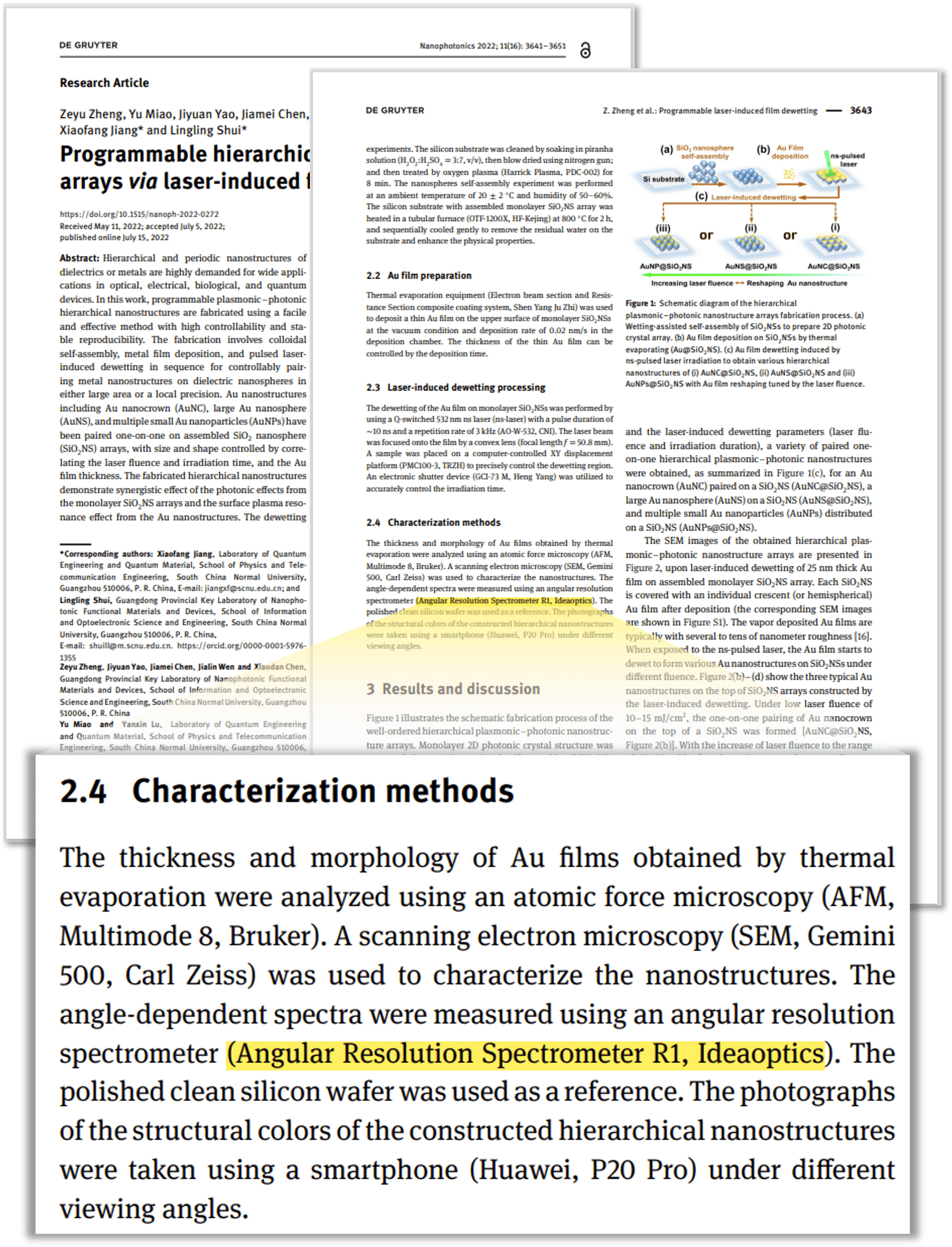 【參考文獻】       ? Zheng Z; Miao Y; Yao J;et al. Programmable hierarchical plasmonic–photonic arrays via laser-induced film dewetting[J]. Nanophotonics (2022).  Link