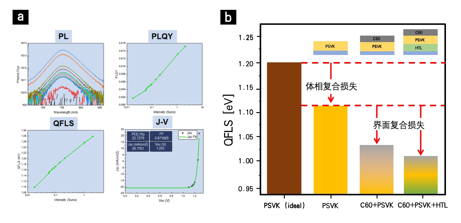 圖3,(a)非器件態鈣鈦礦的多功能測試結果圖;(b)不同薄膜工藝下鈣鈦礦的QFLS測試結果圖